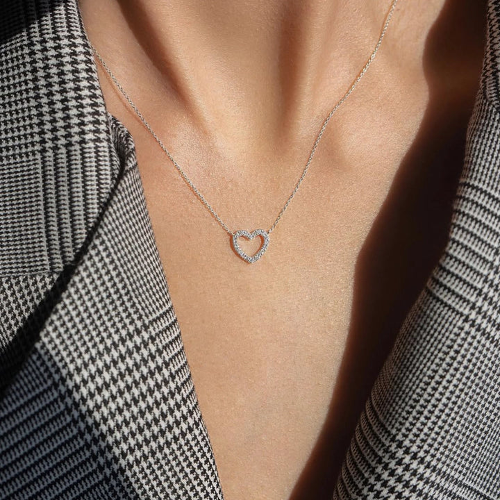 This lightweight and sparkly petite open heart necklace has 20 sparkling Diamonds and is set in 18k gold. Perfect for any occasion, the fine gold chain and pendant create a timeless accessory. Treat yourself or a loved one to the allure and sophistication of this brilliant treasure.