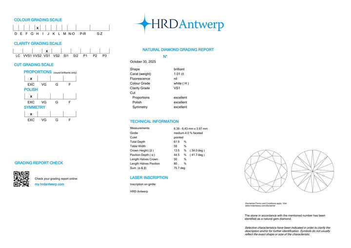 This elegant engagement ring features with a four claw 18k white gold setting. A round shaped diamond set into a beautiful and blissful style ring with a collection of smaller diamonds down each side of the band. The diamond side stones are approximately 0.16ct in total with Clarity VS1 and Color H. Diamonds adorning half of the band complement the gallery for an elegant, chic look.